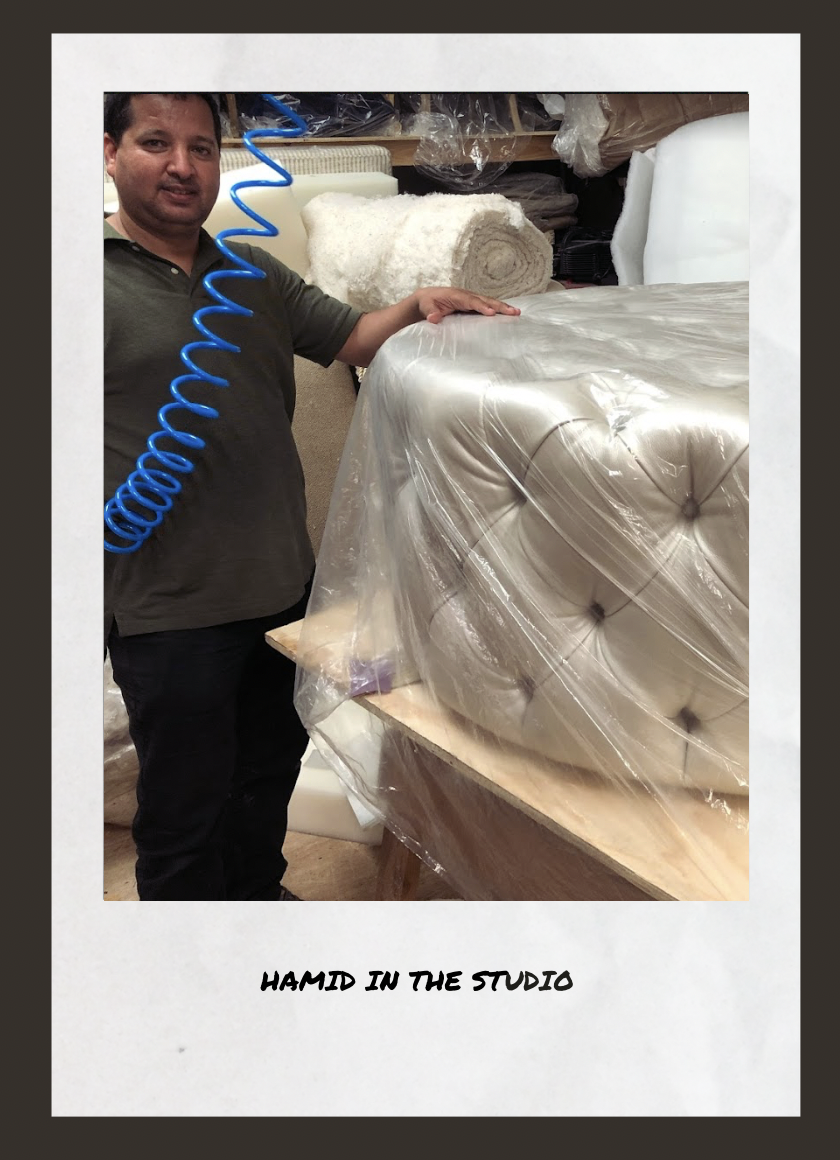 “Hamid is one of the loveliest people I have had the pleasure of working with. All of my custom upholstery projects are done by Hamid for a few reasons. He has integrity and goes above and beyond in taking care of me and my clients, making every job feel special. The quality of his work is impeccable and very detailed oriented—his work room is responsive to the needs of high-end luxury clients. Lastly, he is truly one of the nicest people I have met and brings joy to my work. I like to surround myself with positive, uplifting people, and Hamid and his team are just that.”
